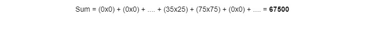 The result of the formula is now very simple. All the elements are multiplied by 0, and thus the sum will be 0.