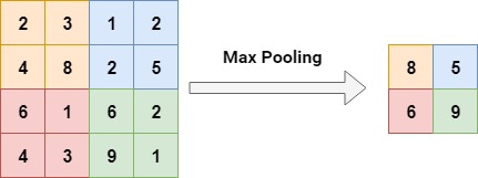 Multiple forms of pooling exist, but max pooling is the most widely used one. As images will say more than one thousand words, this perfectly demonstrates what max pooling does: