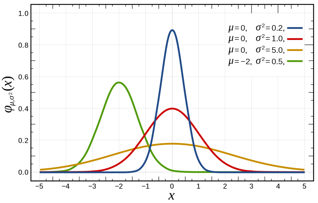 As you can see from the normal distribution, to give but one example, is that the majority of the values are relatively low, say within +3 and -1. In fact, the odds are largest that you randomly select a number that is larger than -1 and smaller than 1, i.e. \(