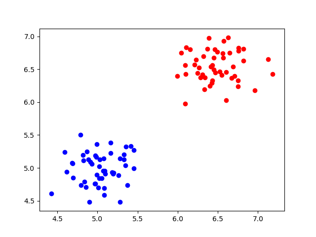 We can simply draw a line in between the two groups and separate the data. As we've seen for e.g. the Rosenblatt Perceptron, it's then possible to classify new data points into the correct group, or class.