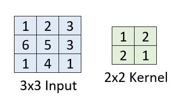 Suppose that we're performing convolutions with a 2x2 kernel on a 3x3 input image, like this: