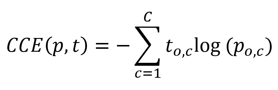 However, there is one interesting detail: for all \(t\) unequal to the actual target value, the result of this computation is 0, since \(t_{o,c}\) is 0 in that case.