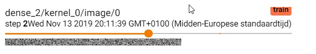 Especially when you're very visually oriented, you may wish to compare visuals rather than numbers, and yay - TensorBoard with Keras supports this. By configuring write_images, you can actually visualize the weights as an image: