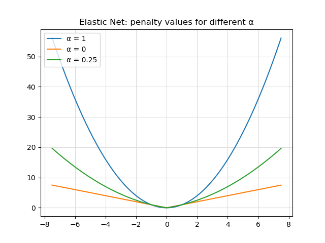 In the original paper, \(\lambda_1\) can also be defined as \(1 - \alpha\) and \(\lambda_2\) as \(\alpha\). This makes the impact of both relative to each other, with \(\alpha = 1\) giving L2 regularization and \(\alpha = 0\) giving L1 regularization. All the values in between produce something that mimics one of them.