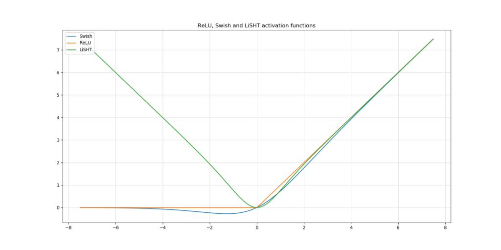Another activation function is LiSHT. It works in a different way when comparing it to more traditional activation functions: negative inputs are converted into positive outputs. However, in terms of the derivative, this produces negative gradients for negative inputs, which eventually saturate to zero. This may also be good for both model sparsity and training power. It might thus be worth a try!