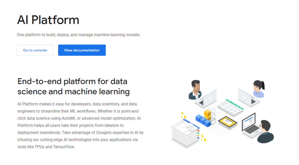 Google's offering for training deep learning models is embedded in the Google Cloud AI Platform. It's one platform to build, deploy and manage machine learning models, as the introductory text argues:
