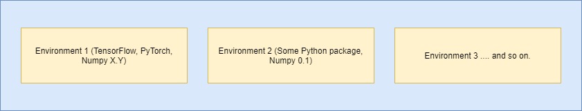As you can see, environments allow you to install multiple versions of the same tool - i.e. package - across environments. In one environment, you can use one version of a package, while in another environment, another version of the same package can be used.