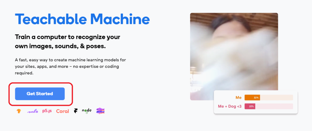 The first thing you need to do in order to get started with Teachable Machine is to navigate to their website, teachablemachine.withgoogle.com.