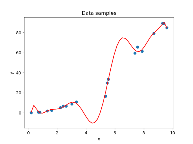 Here, we can clearly see that our models capture much of the noise: what should be a smooth, quadratic rise (the function we actually visualized is the function \(x^2\) at the domain \(x \in [0, 10]\)) is now a noisy one. We therefore have introduced noise into our model which is not present in our 'real world' (i.e., in \(x^2\))!
