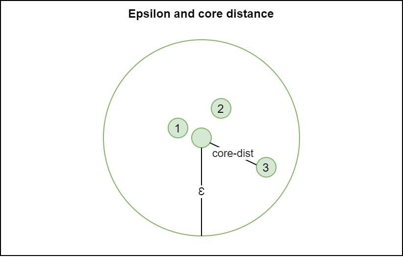 If you have read the article about DBSCAN, you might have thought that many of these concepts are familiar. And in fact, they are! All concepts covered so far are also components of the DBSCAN algorithm. The next one, core distance, is however unique to OPTICS. Let's take a look.