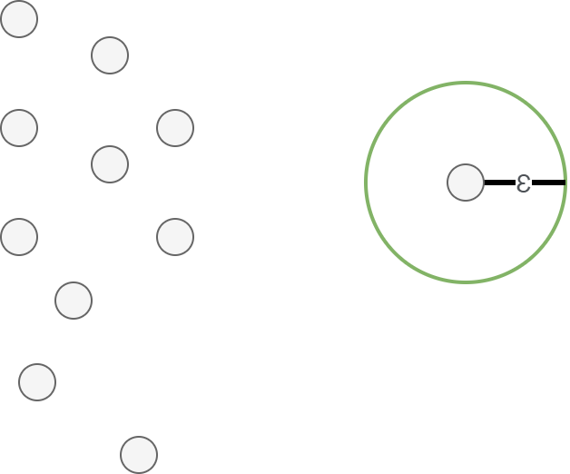The first parameter is the epsilon parameter, or \(\epsilon\). It is a distance parameter in the sense that for any point \(p\), the epsilon defines a distance around the point, like this: