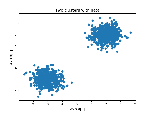 Intuitively, we can already see that there are two groups of data: one towards the bottom left part of the plot, another towards the upper right part of the plot.