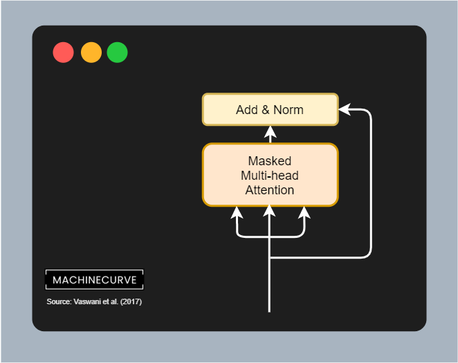 As is common in the Transformer architecture, the masked multi-head attention segment also makes use of residuals and layer normalization. In other words, a residual connecting the input embedding to the addition layer is added, combining the output of the masked multi-head attention segment with the original position-encoded output embedding. This allows gradients to flow more freely, benefiting the training process. Layer normalization stabilizes the training process further, yielding better results.