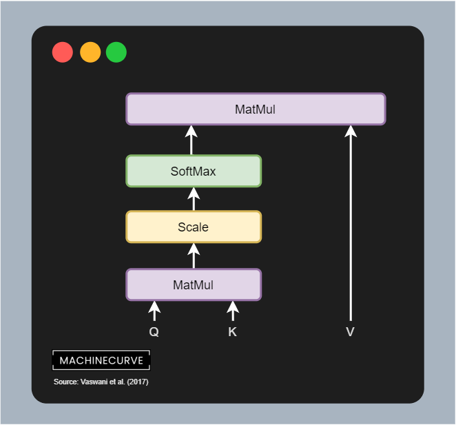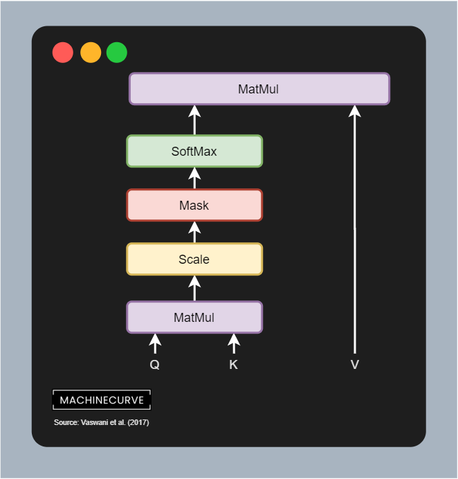 Visually, such a scaled block looks as follows (Vaswani et al., 2017):