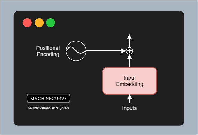 Vaswani et al. (2017) use a maths based (more specifically a sine and cosine based) approach to positional encoding. By letting the position and dimension flow through a sine or cosine function depending on its oddity or evenness, we can generate positional encodings that we can use to position-encode the embeddings output. The outcome of this step is a vector which has much of the information of the embedding retained, but then with some information about relative positions (i.e. how words are related) added.