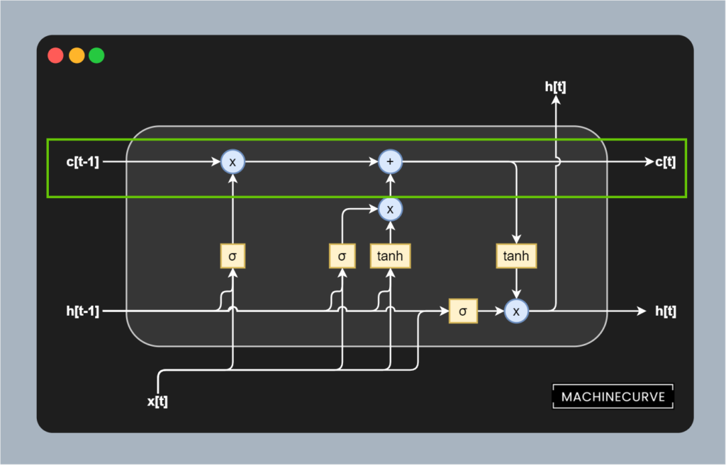 In their 1997 work, Hochreiter & Schmidhuber introduce the Long Short-Term Memory, or LSTM. In the work, the authors explore Hochreiter's 1991 thesis which among others investigates the problem with vanishing gradients in classic RNNs. They explore why they happen and identify a solution: the so-called Constant Error Carrousel (CEC). We'll explore why it solves vanishing gradients in more detail later, but it boils down to one thing: because the memory is constructed using linear operations, the derivative is always \(1.0\) (because the derivative of \(f = c \times x\) equals 1.0).