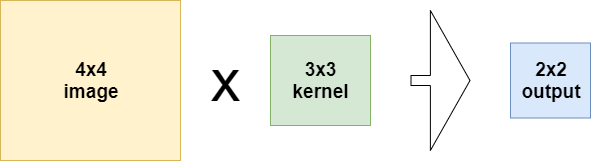 Each convolutional block in the U-Net contracting path is composed of two convolutional layers with a 3x3 kernel size. They are not padded. Recall that when a 3x3 kernel is used with stride 1, image height and width reduce by 2 pixels each. This is clearly visible in the image displaying the contracting path. For example, the input image is contracted from 572x572 pixels to 570x570 and then 568x568 pixels in the convolutional block.