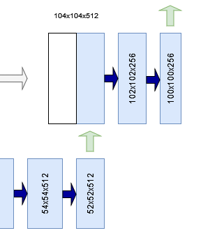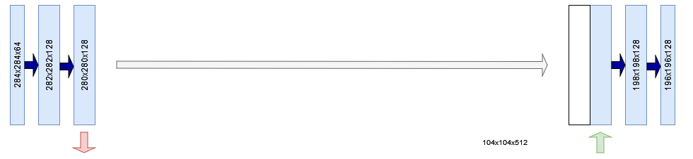 Recall from the image above that at each level, the output of the convolutions in the convolutional block is passed as a skip connection to the first upsampling layer in the upsampling block at the corresponding level.